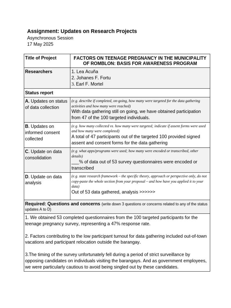 Assignment - Updates On Research Projects | PDF