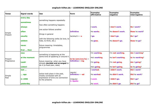 All tense rule chart or table in english pdf grammatical tense syntax ...