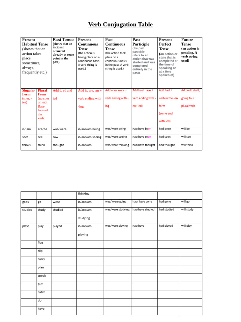Verb Conjugation Tables: Regular Verbs and Simple Tenses | Course Hero