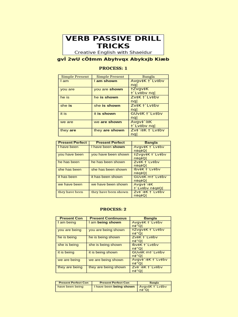 Verb tenses table | DOCX | Dental Health | Diseases and Conditions