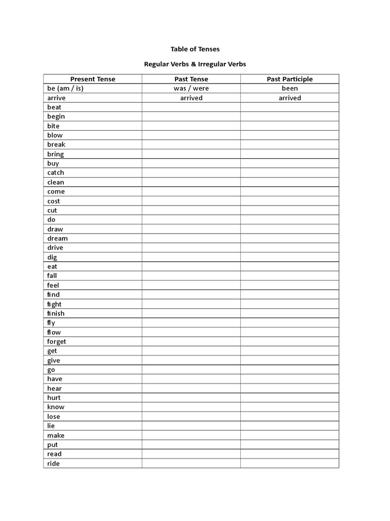 English Verb Tenses Tables | English verbs, Verb tenses, Learn handwriting
