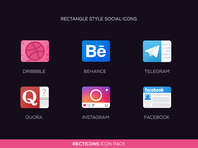 Rectangle Social Icons with rich details. by Just New Designs on Dribbble