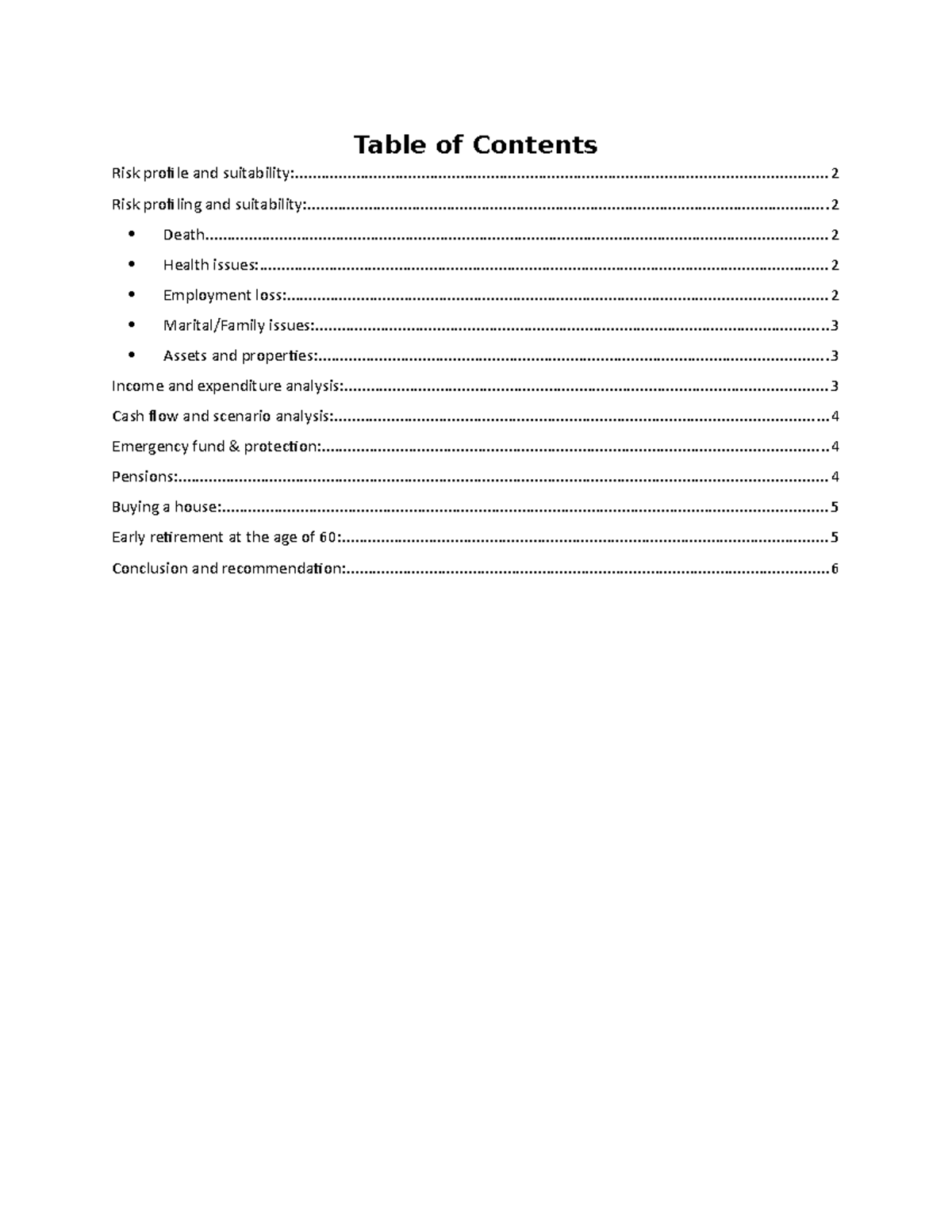 Asignment 2 - Management study - Table of Contents Risk profile and ...