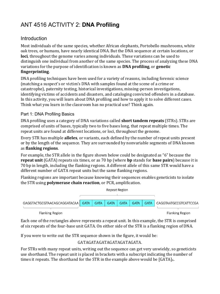DNA Profiling Activity Overview | PDF | Dna Profiling | Microsatellite