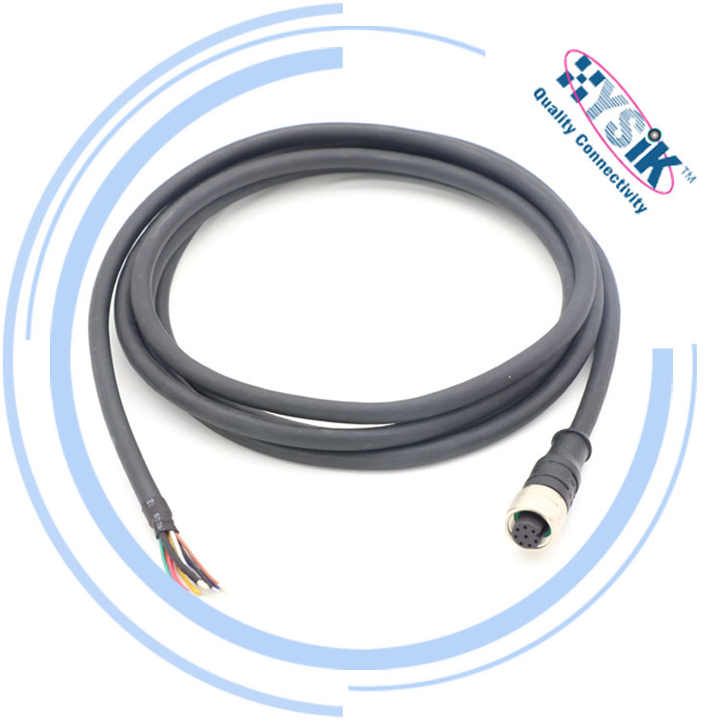 M12 X-Code 8pin Female Straight Connector Molded with 4X2X26AWG ...