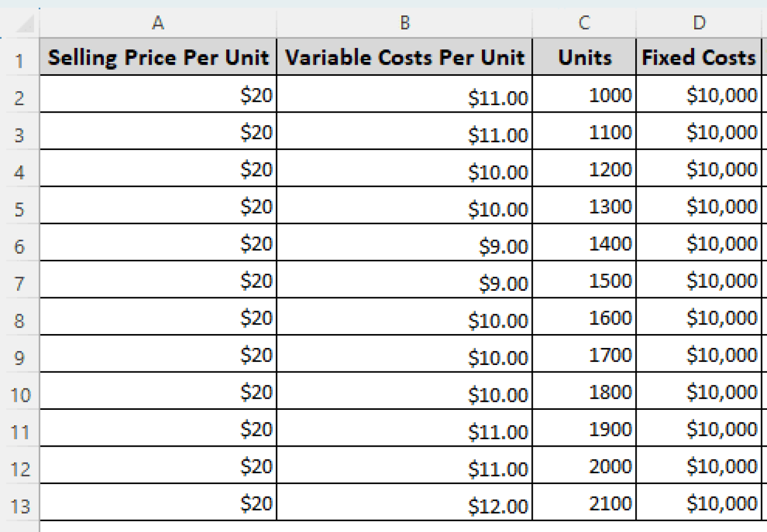 How To Create A Cost Volume Profit Chart In Excel - Design Talk
