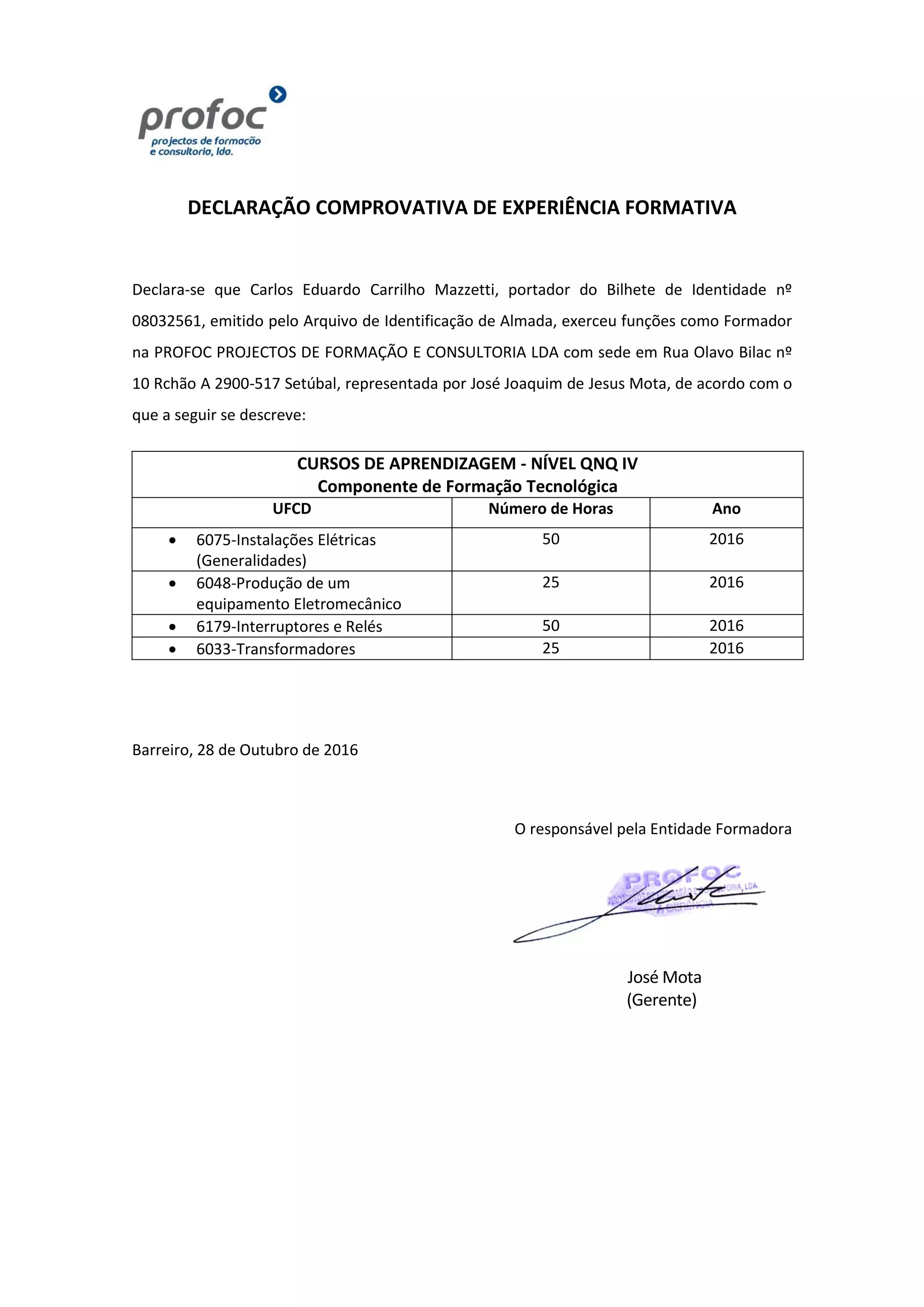 Declaracao de actividade de formacao_Carlos Mazzetti | PDF