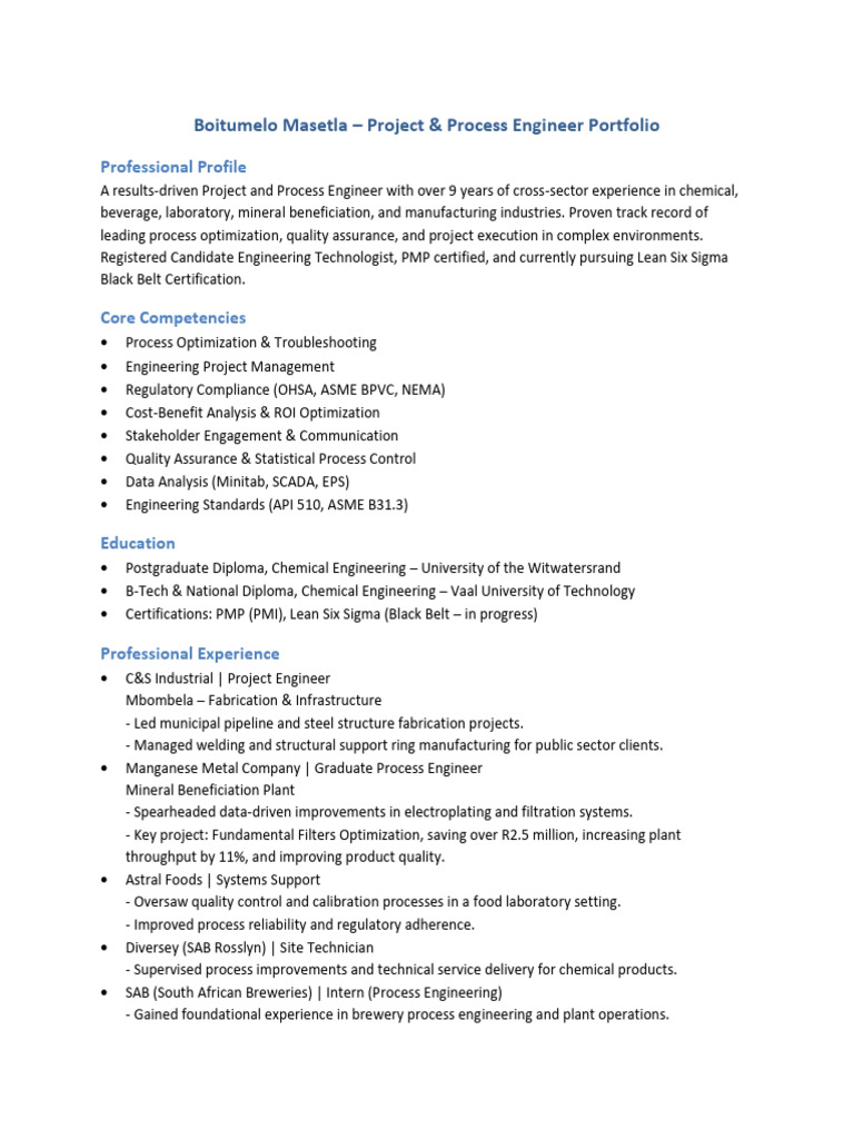 Process Engineer Resume: Sample, Writing Guide & Tips