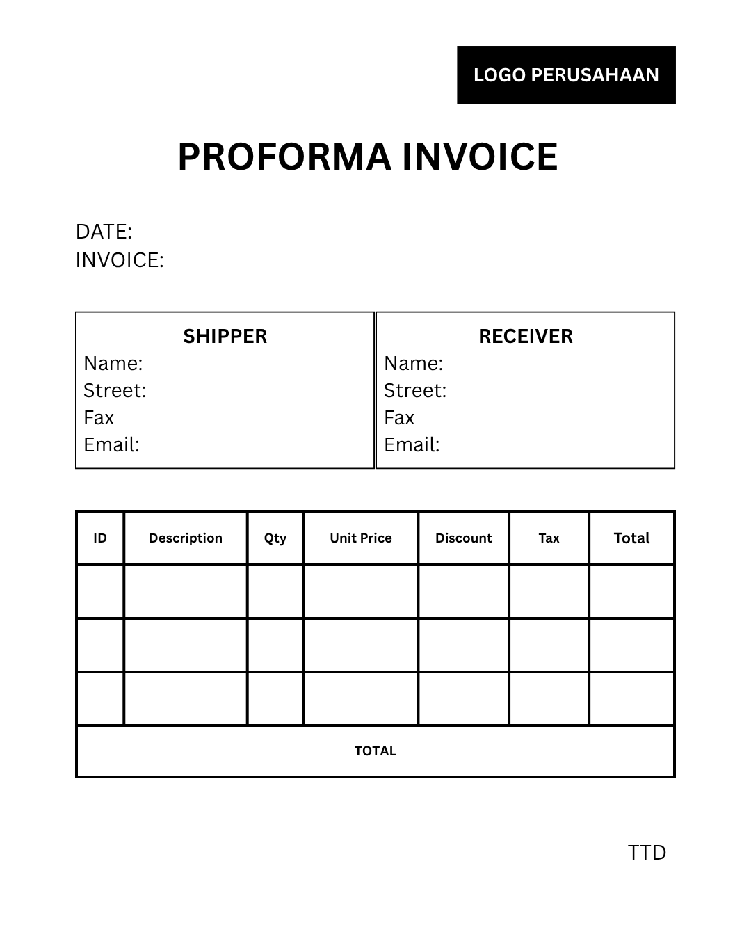 Proforma Invoice Template Free Download word, excel, google docs and sheets