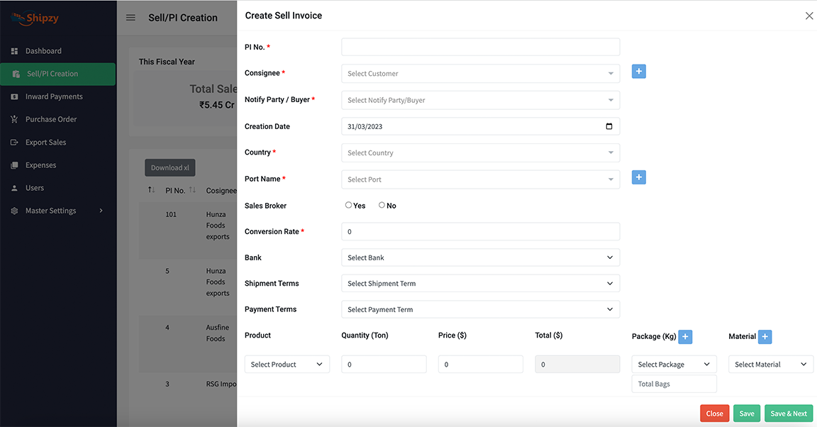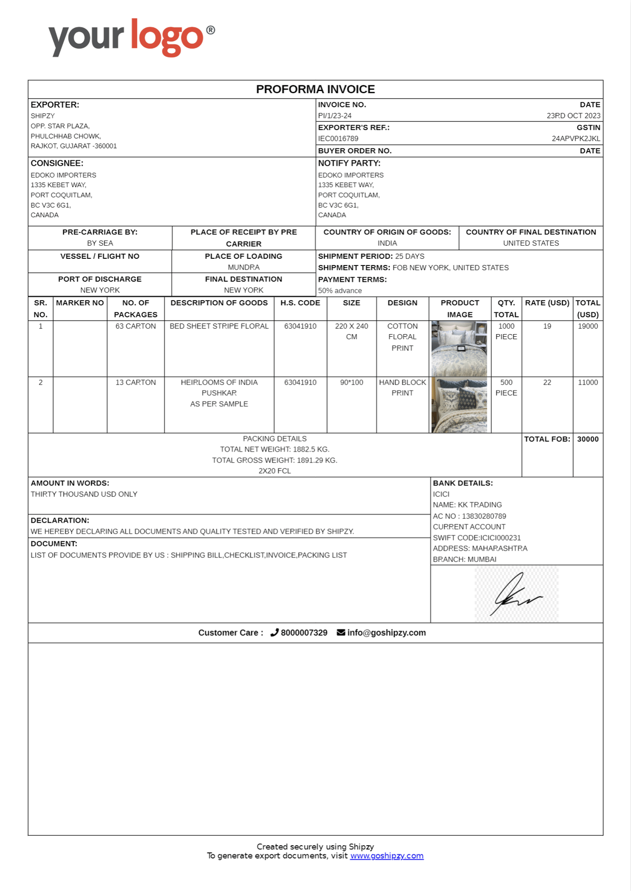 Proforma Invoice Export Software | Create PI for Export Business | Shipzy