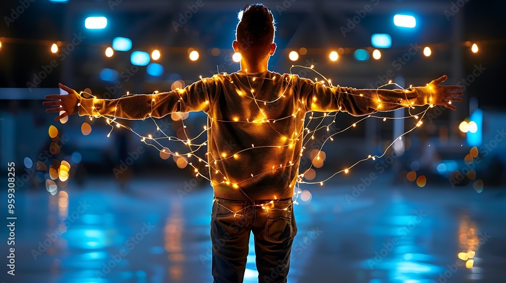 Bathed in ethereal lights, a woman closes her eyes in reflection ...