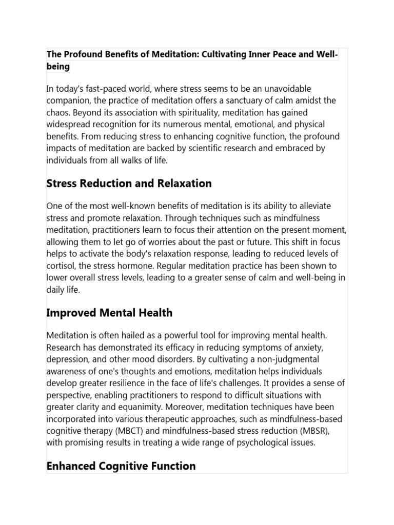 The Profound Benefits of Meditation | PDF | Meditation | Mental Health