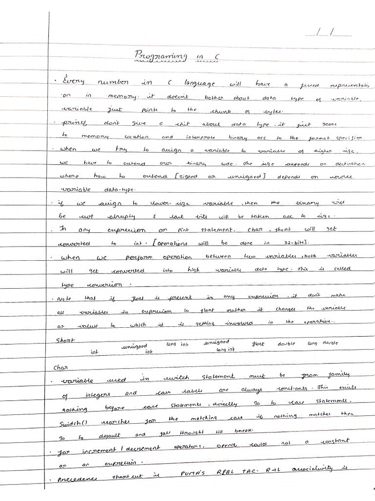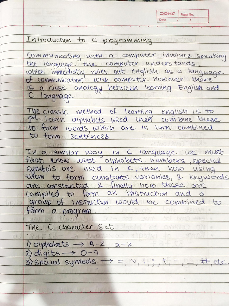 C Programming Handwritten Notes for Beginners | Basic Concepts ...