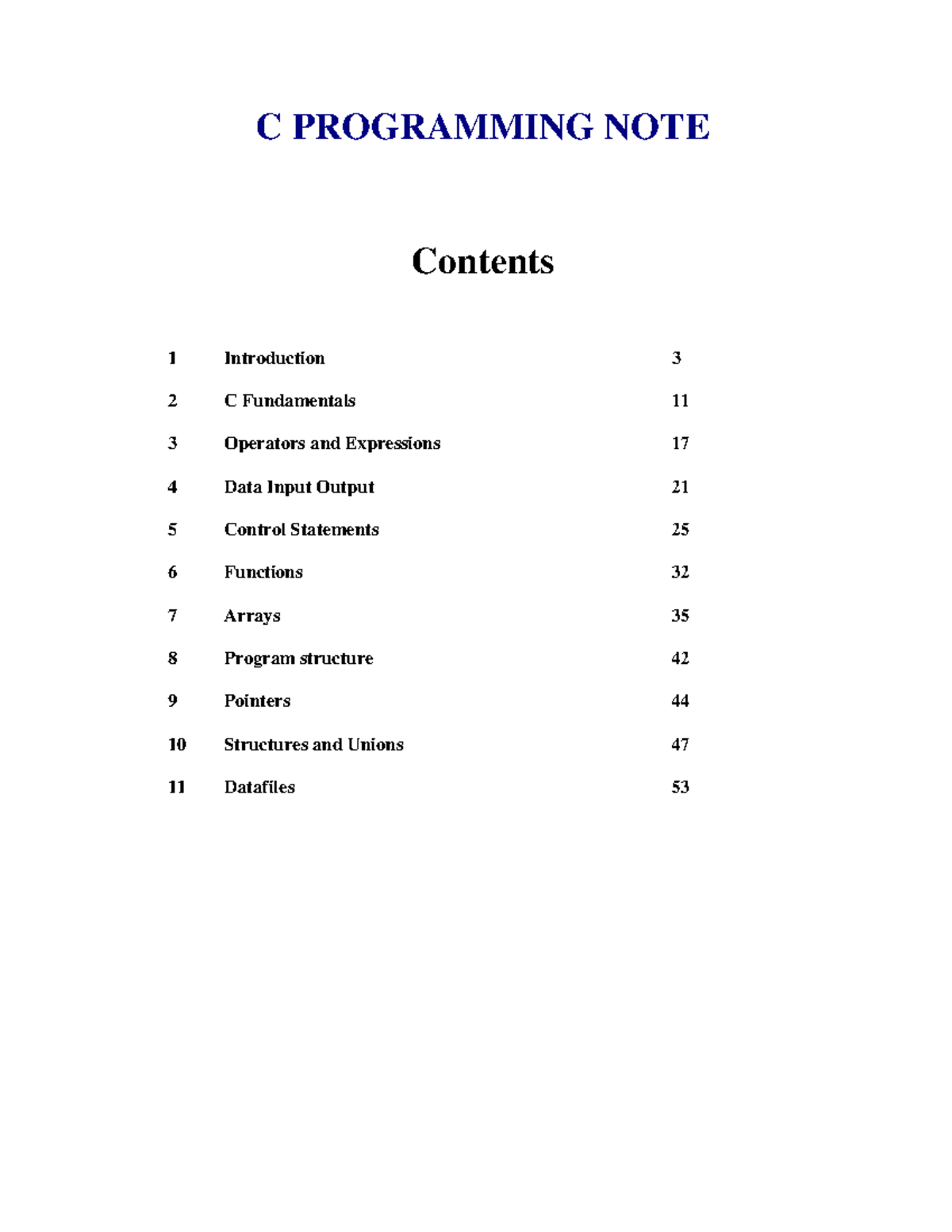 C Programming Notes - good - C PROGRAMMING NOTE 1 Introduction Contents ...