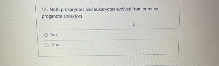 Solved 14. Both prokaryotes and eukaryotes evolved from | Chegg.com