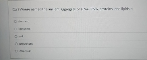 Solved Carl Woese named the ancient aggregate of DNA, RNA, | Chegg.com