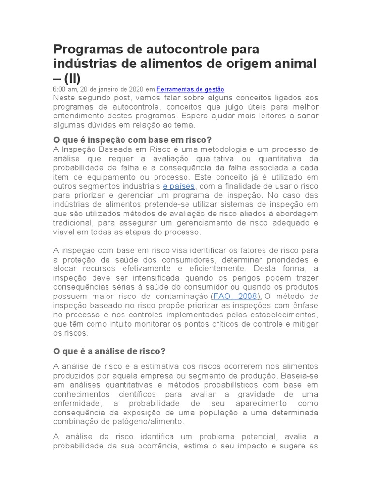 Programas de Autocontrole para Indústrias de Alimentos | Download ...