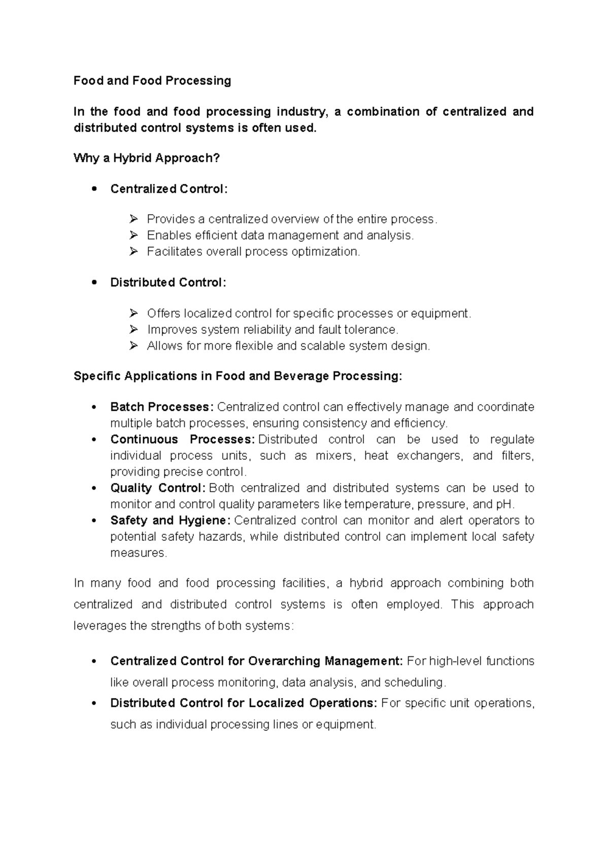 Food Processing Automatic Control System - Control Solutions and Fa ...