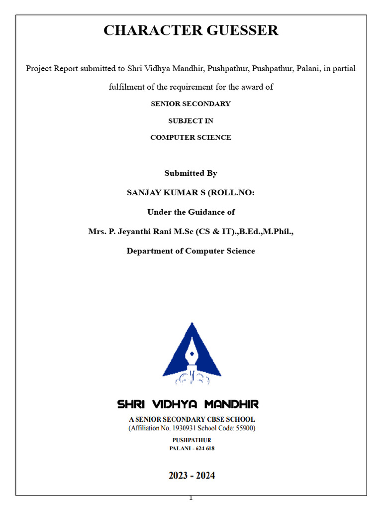 Project of Computer Science For Class XII First Selection (2024 - 2025 ...