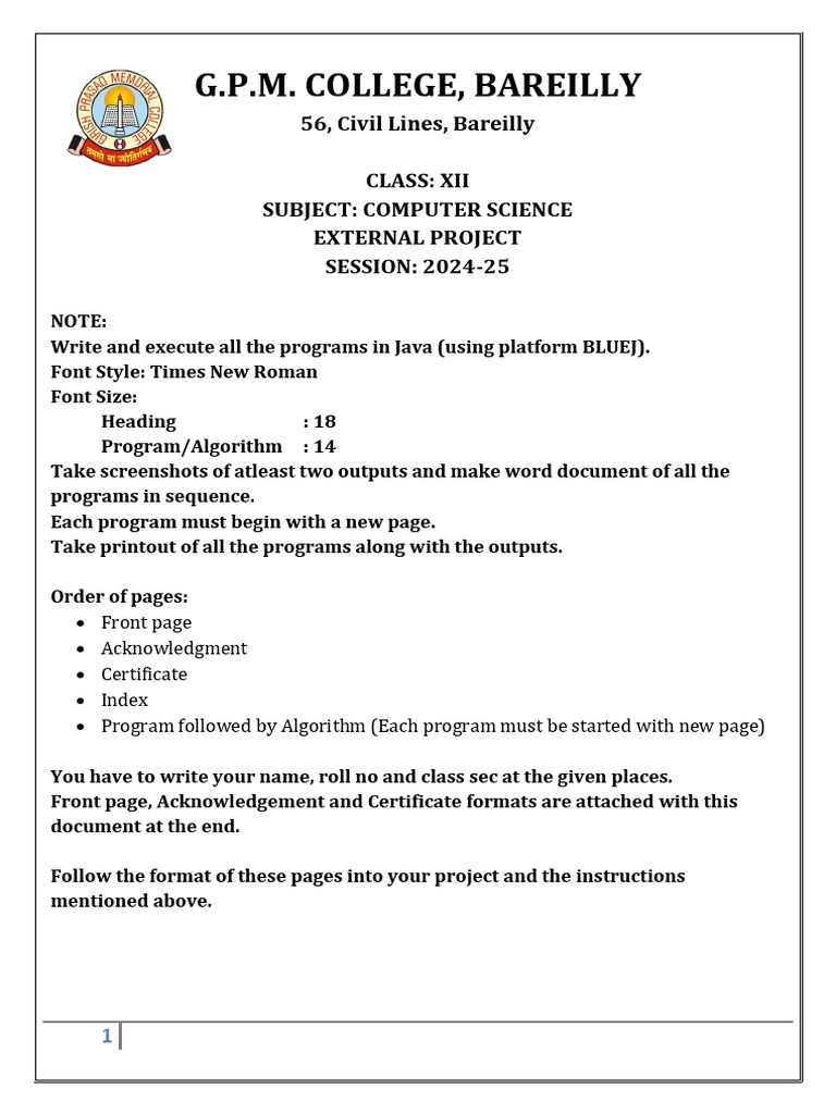 Java Project Guidelines for Class XII | PDF | Computing