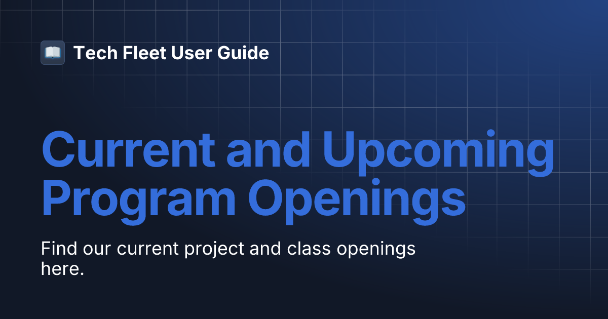 Current and Upcoming Program Openings | Tech Fleet User Guide