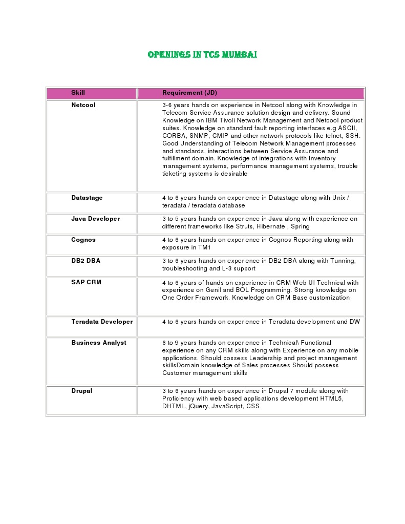 TCS Mumbai Job Openings: Tech Roles | PDF | Computers