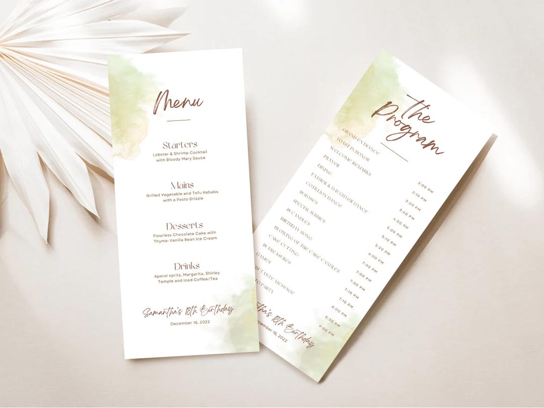 Editable Cotillion Debut Program and Menu for 18th Birthday Debutante ...