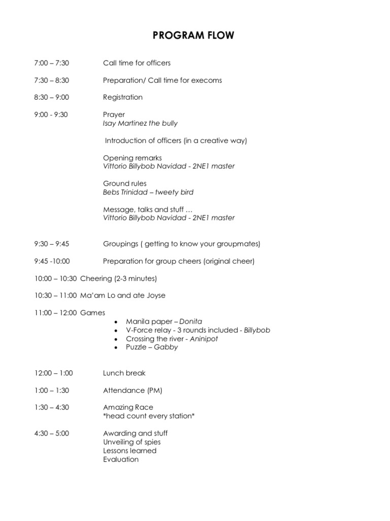 Program-FLOW - Flow of program - PROGRAM FLOW TIMEACTIVITIESPERSON ...