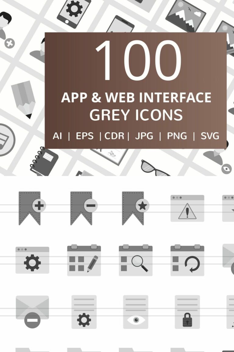 100 App & Web Interface Grey Icons – MasterBundles