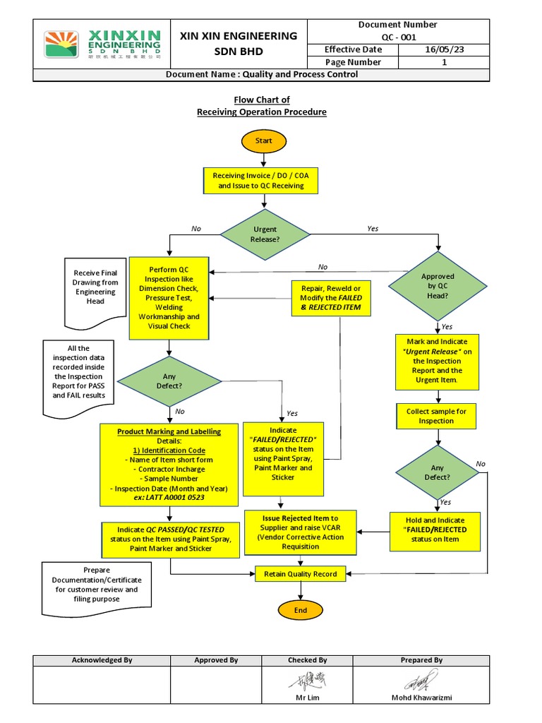Incoming Inspection Process Flow Chart Incoming Inspection Flow Chart ...