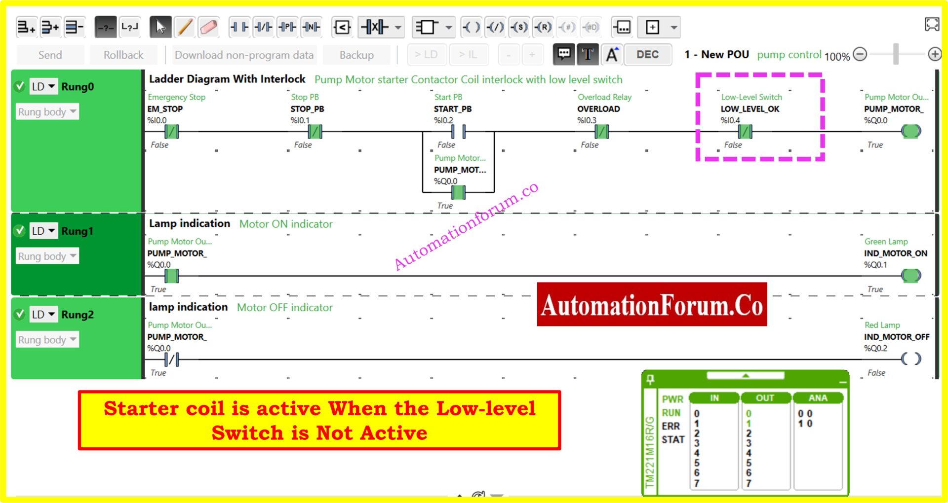 PLC Program for Motor Starter with Low-Level Switch Interlock 3 ...