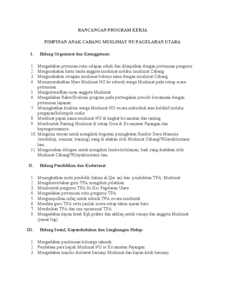 Rencana Kerja Muslimat NU Pagelaran Utara | PDF | Ilmu Sosial