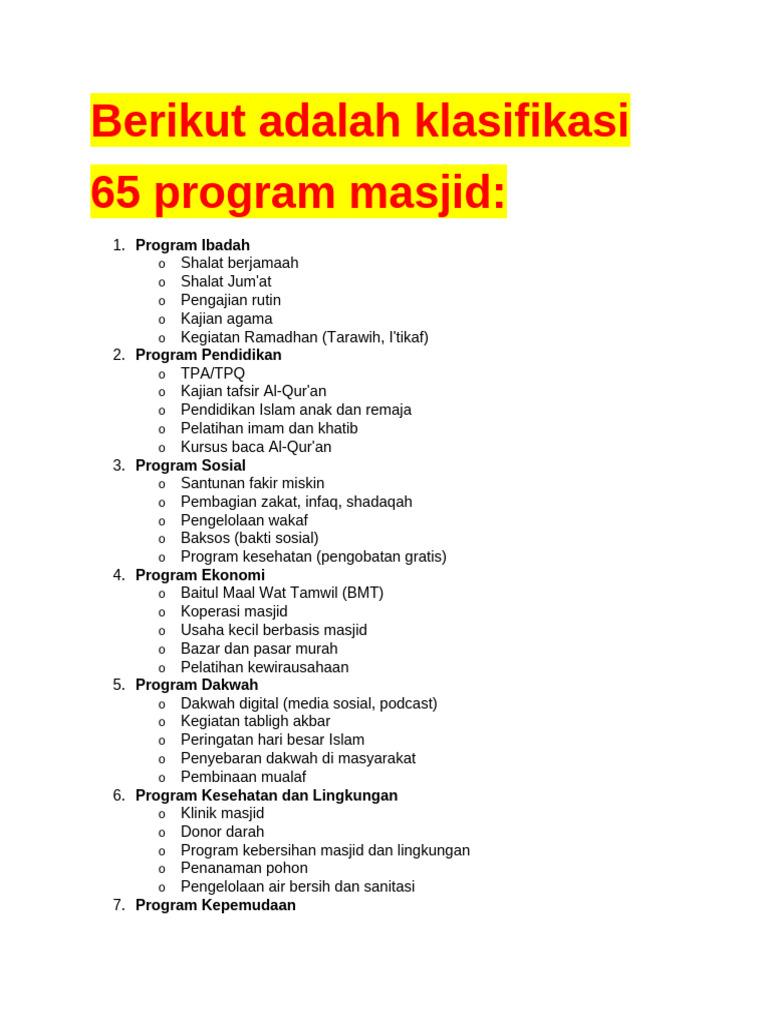 65 Klasifikasi Program Masjid | PDF