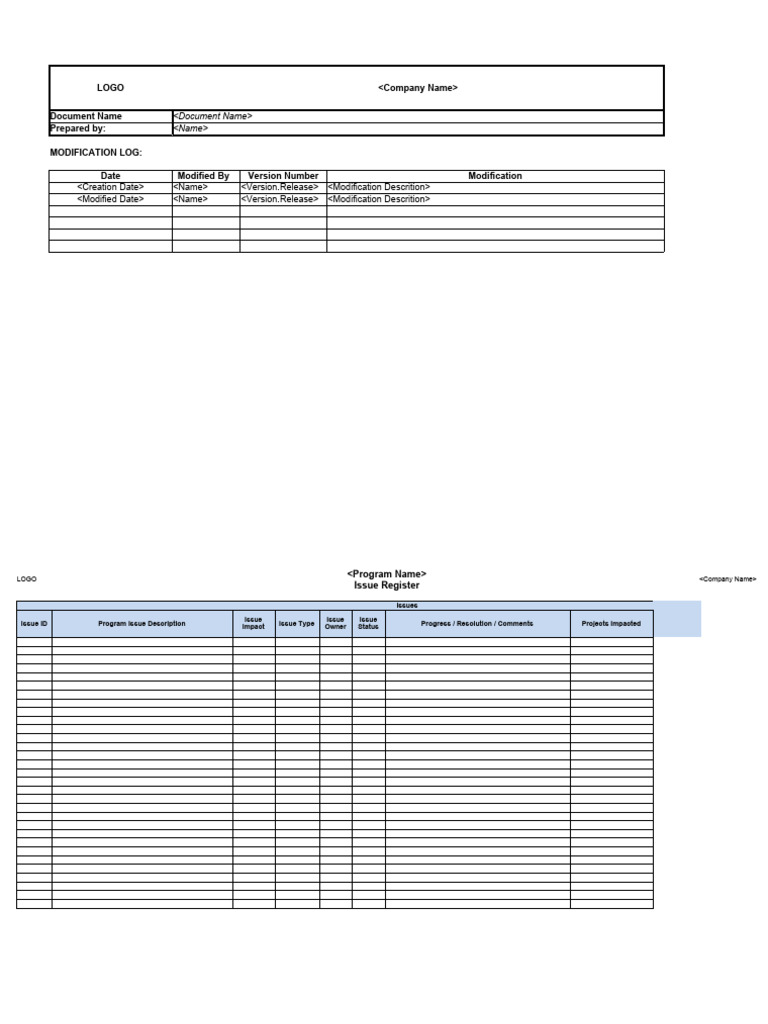 Issue Log Template