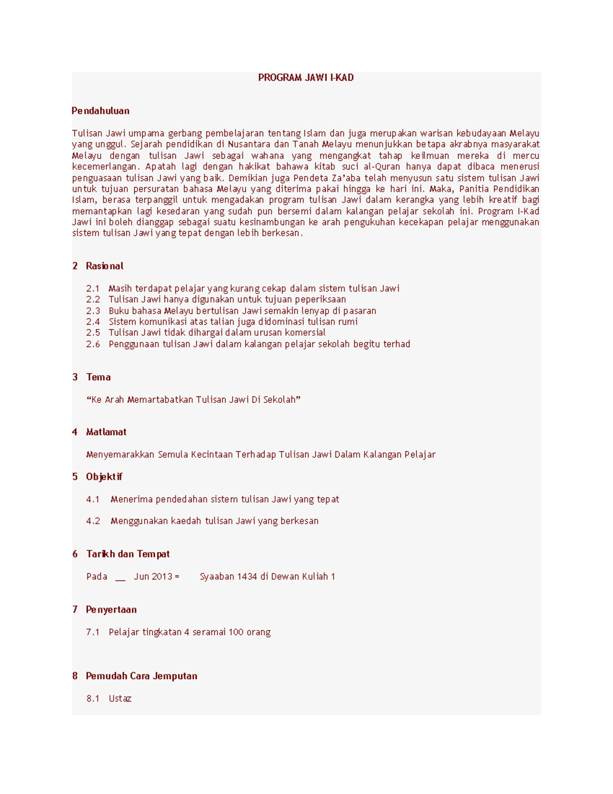 Program JAWI DAN B ARAB menengah - PROGRAM JAWI I-KAD Pendahuluan ...