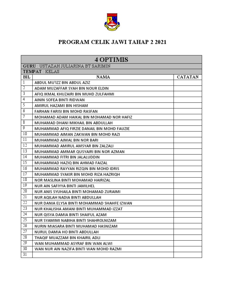 Program Celik Jawi 2021: Senarai Nama | PDF