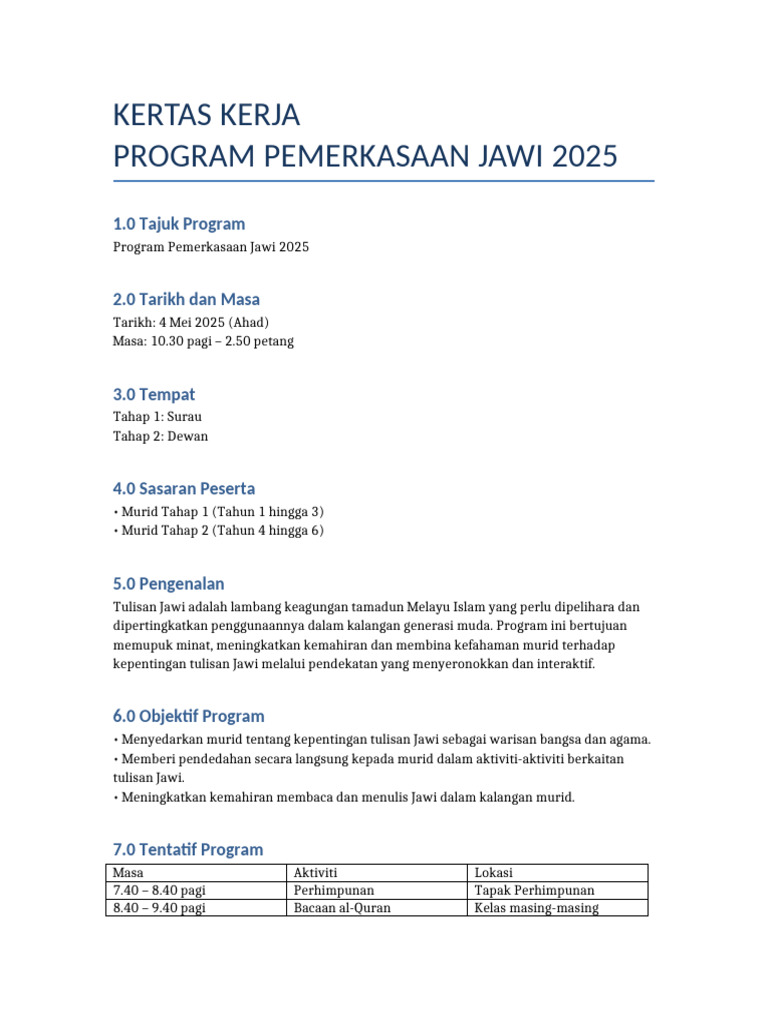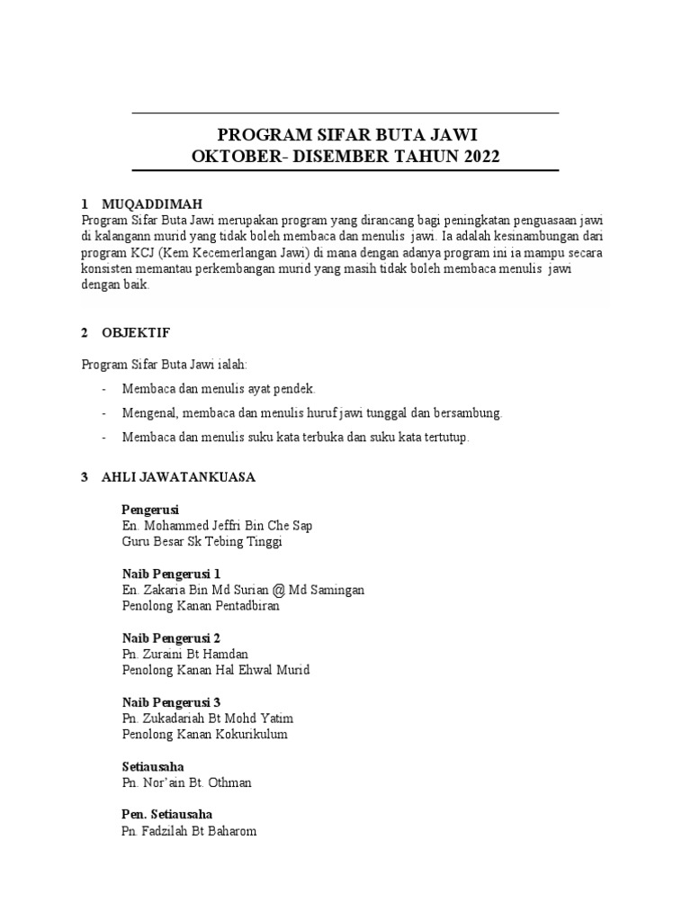 Kertas Kerja Program Sifar Buta Jawi 2022 | PDF