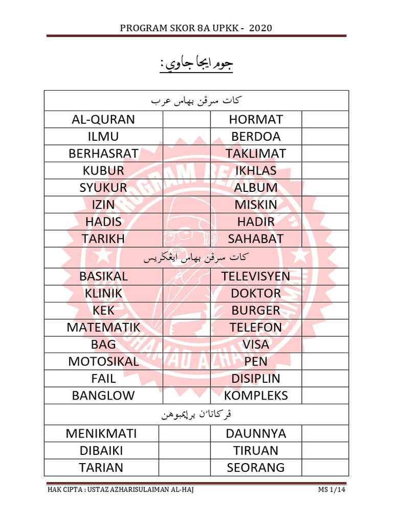 Skor A Jawi Upkk 2020 Program Kecemerlangan Upkk Ustaz Azhari Sulaiman ...
