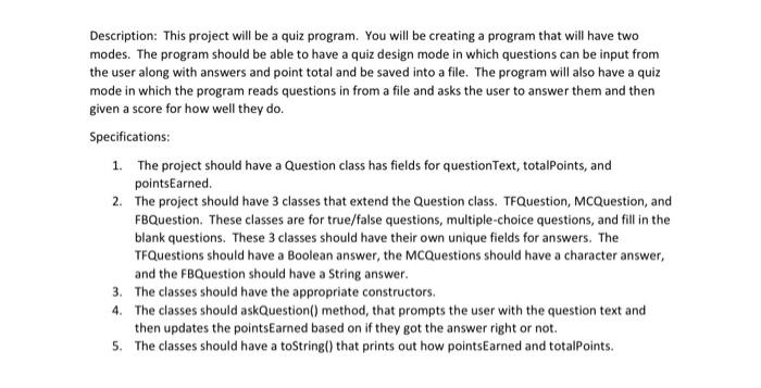 Description: This project will be a quit program. You | Chegg.com