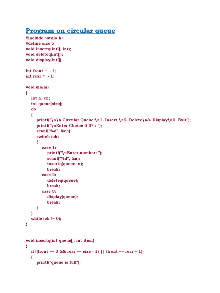 Queue Program in C | PDF | Queue (Abstract Data Type) | Formal Methods