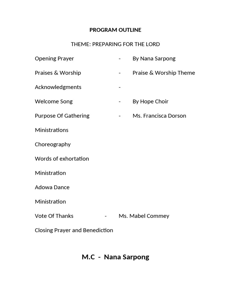 Update Flyer on Programme Outline Designed by Oppomence Graphics in Ghana