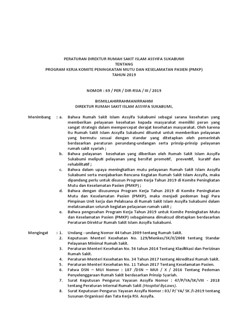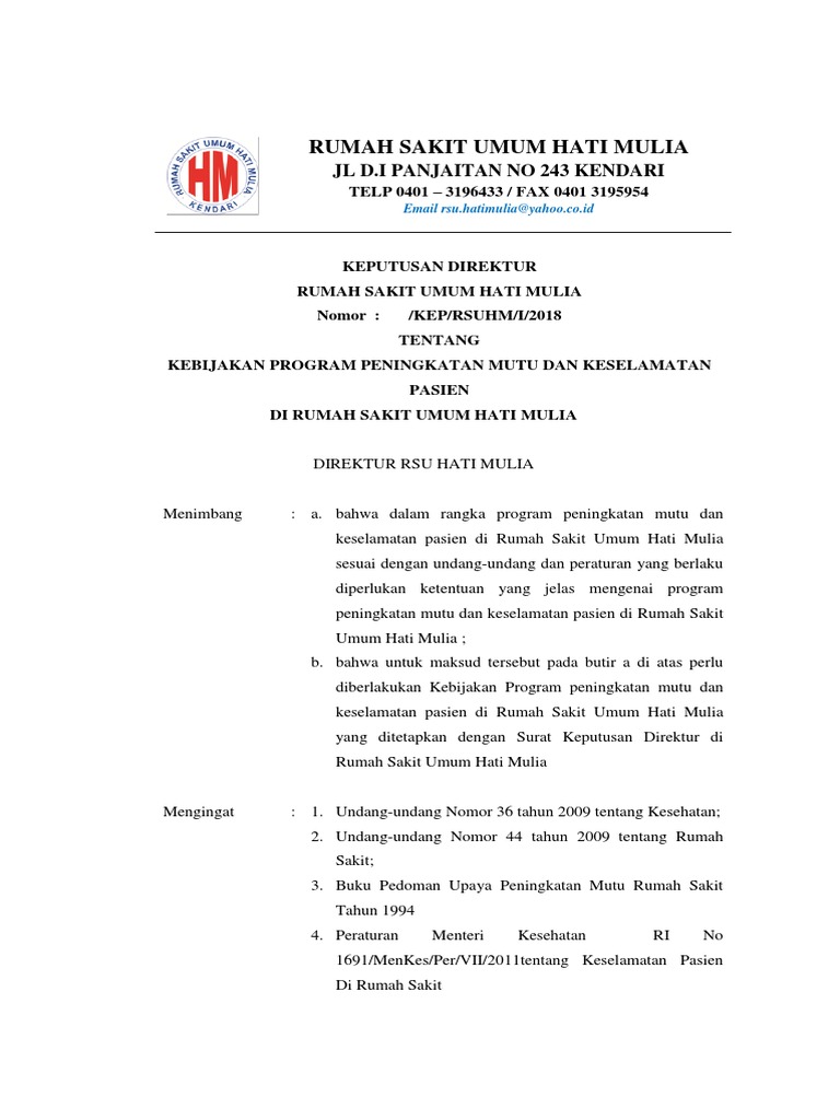 SK Program Kerja Komite Peningkatan Mutu Dan Keselamatan Pasien (PMKP ...