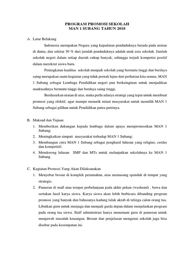 Strategi Promosi MAN 1 Subang 2018 | PDF