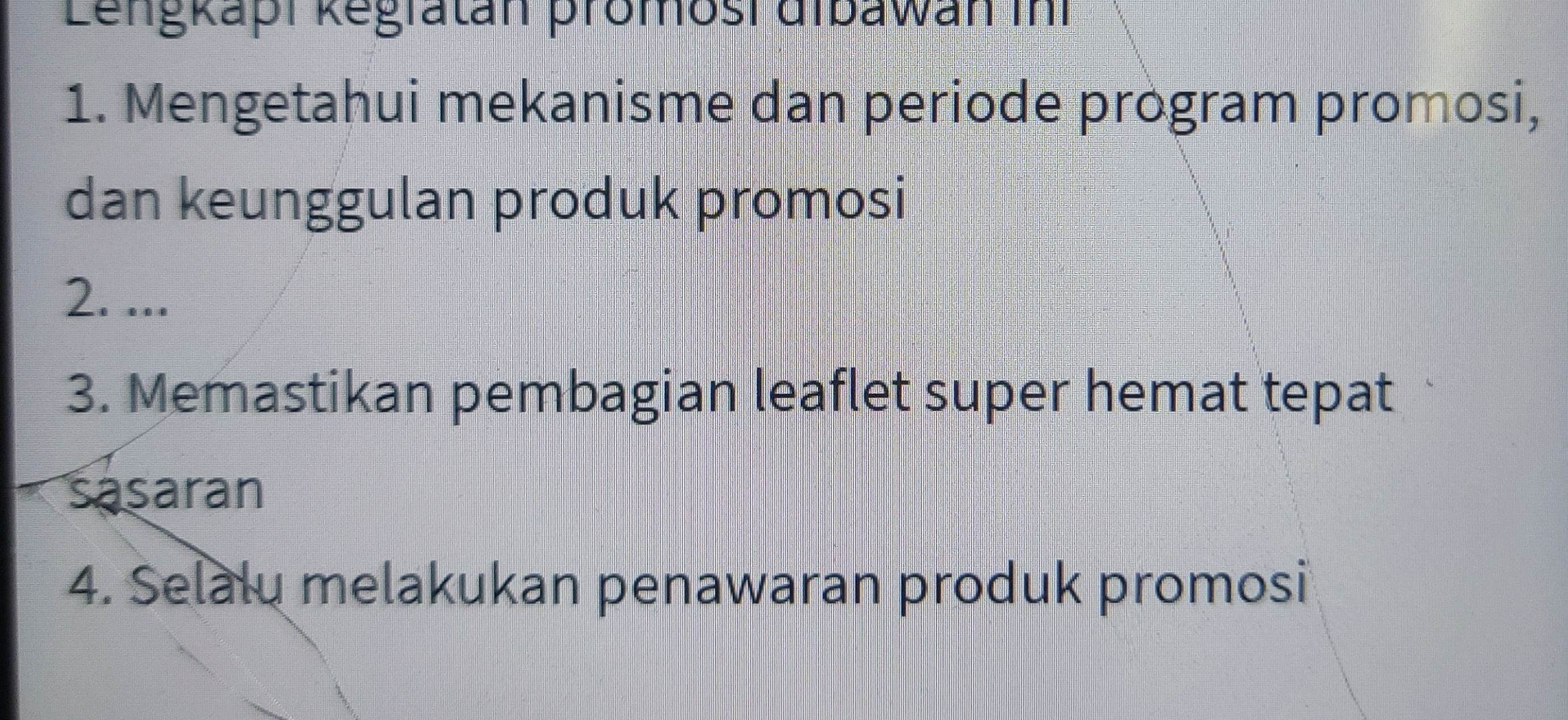Lengkapi kegiatan promosi di bawah ini 1. | StudyX