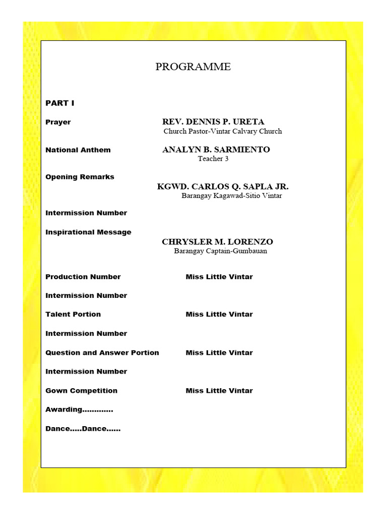 Miss Little Vintar Pageant Program | PDF