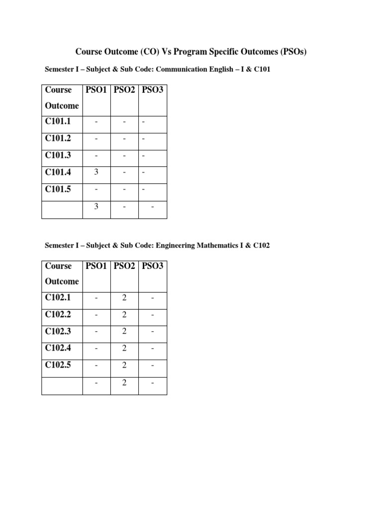 Program Outcomes and Course Outcomes for Engineering Mathematics I ...