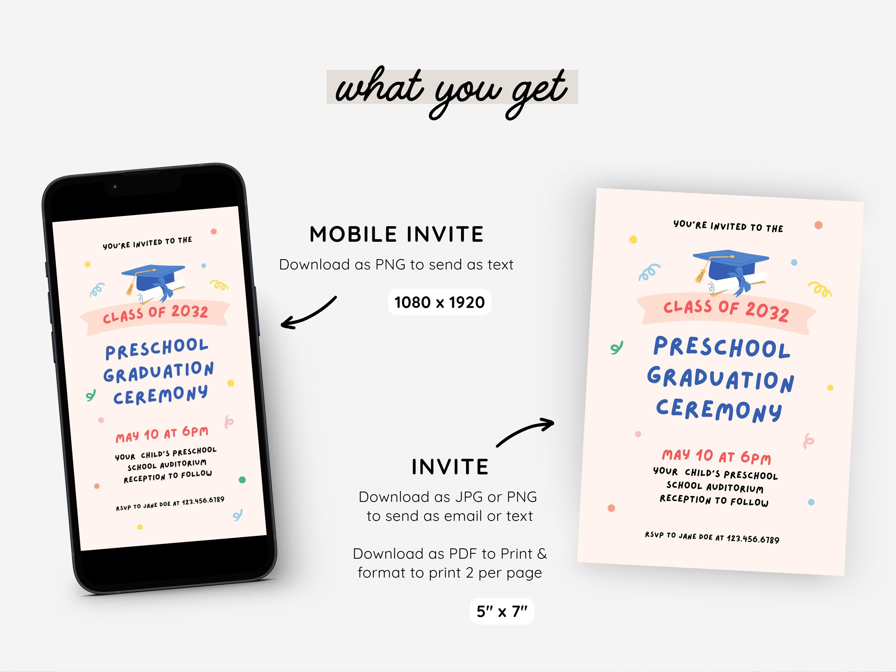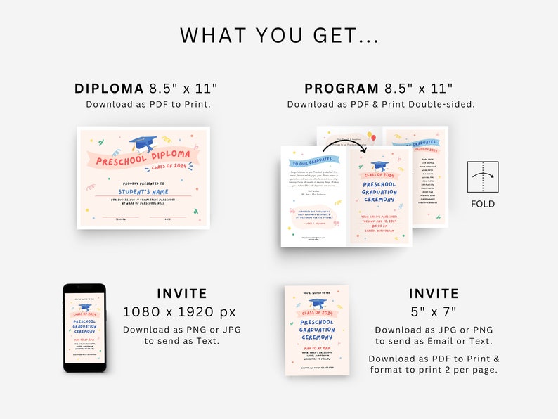 Editable Pre-k Graduation Bundle Diploma Program Text Invitation ...