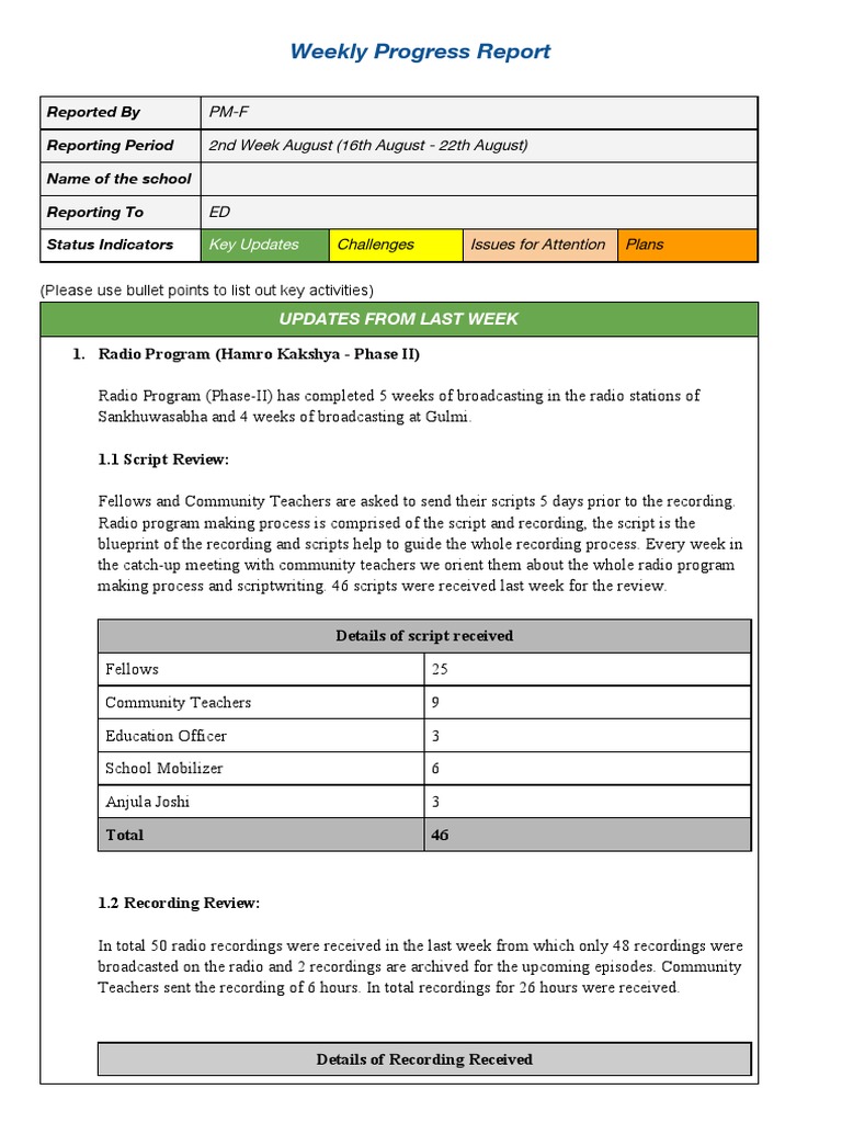 What Is Weekly Progress Report at Lindsey Vann blog