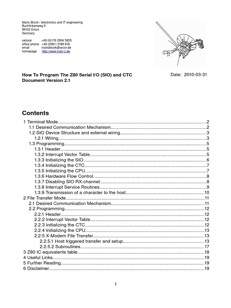 How To Program The Z80 Serial I/O (SIO) and CTC Document Version 2.1 ...