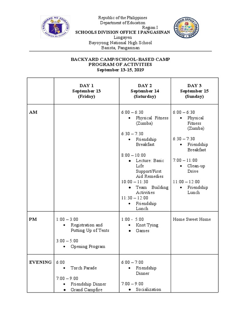 Program of Activities - Opening Program and Mini Sportsfest | PDF